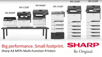 Najnovšie A4 multifunkčné zariadenia a tlačiarne od Sharp sú mimoriadne univerzálne a s kompaktnými rozmermi predstavujú ideálne riešenie pre každý podnik. Ponúkajú neuveriteľnú užívateľskú prívetivosť, robustné zabezpečenie a certifikovanú energetickú účinnosť s nižšou spotrebou energie. Firemná tlač nikdy nebola tak flexibilná.